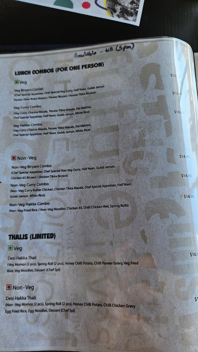 When it comes to the menu, the culinary offerings are nothing short of spectacular. The Lunch Combos shine with options like the Veg Hakka Combo, which features fragrant veg fried rice paired with flavorful gobi manchurian, zesty chili paneer, and crispy spring rolls—an absolute steal at CA$15.99. For those craving something heartier, the Veg Curry Combo at CA$14.99, which includes a selection of rich curries like chana masala or paneer tikka masala, is a must-try. And don’t miss the Chicken Dum Biryani—its complex spices and tender chicken promise a culinary experience you won’t soon forget.